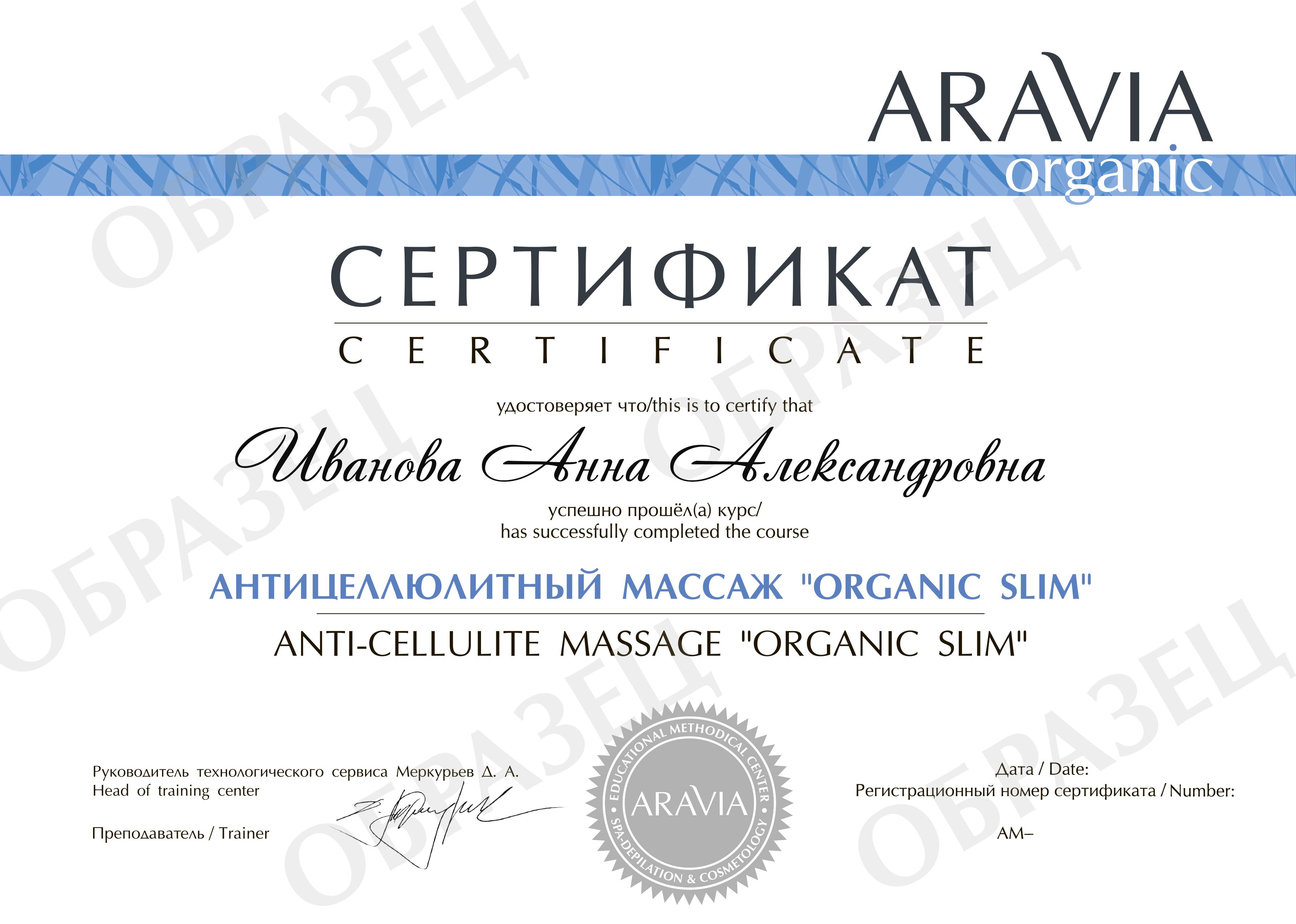 После прохождения курса участники получат прайс-лист и именной сертификат, подтверждающий прохождение курса по направлению «Антицеллюлитный массаж Organic Slim».
