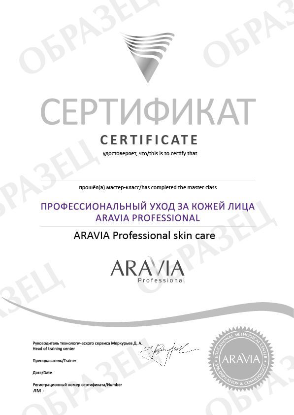 После прохождения мастер-класса участники получат прайс-листы, каталог продукции и именной сертификат о прохождении мастер-класса по теме «Профессиональный уход за кожей лица ARAVIA Professional».